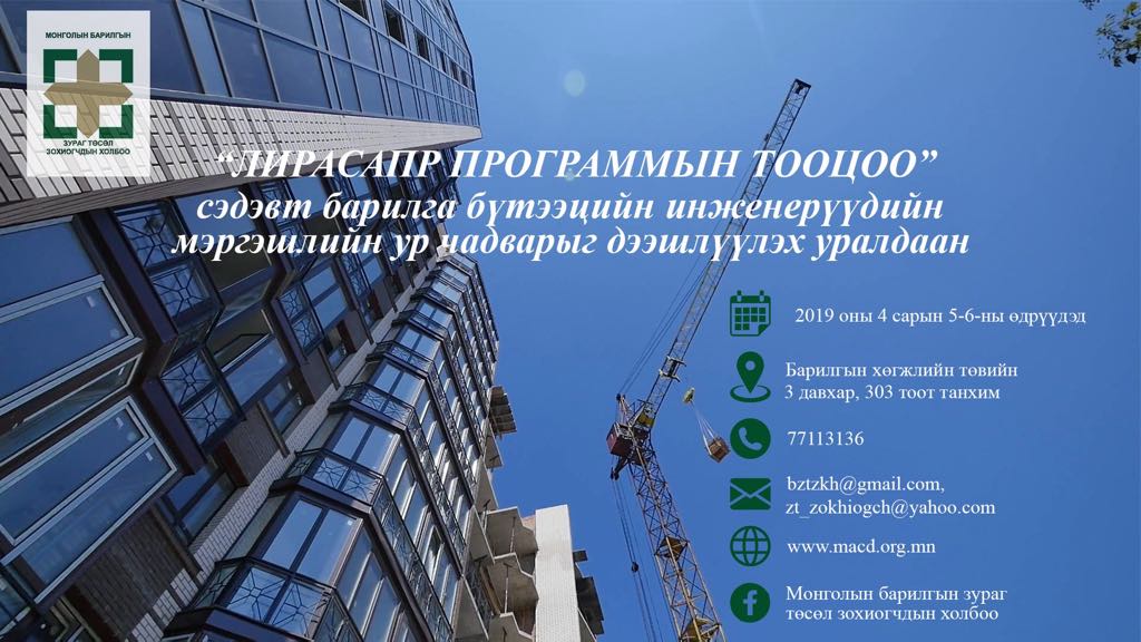 зохион байгуулж, монголын барилгын бүтээцийн инженерүүдийн ур чадварыг сорьж байсан билээ.